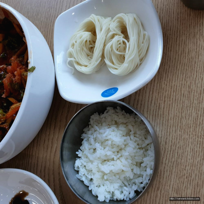 밥 반공기(?)와 소면이 같이 나옵니다.